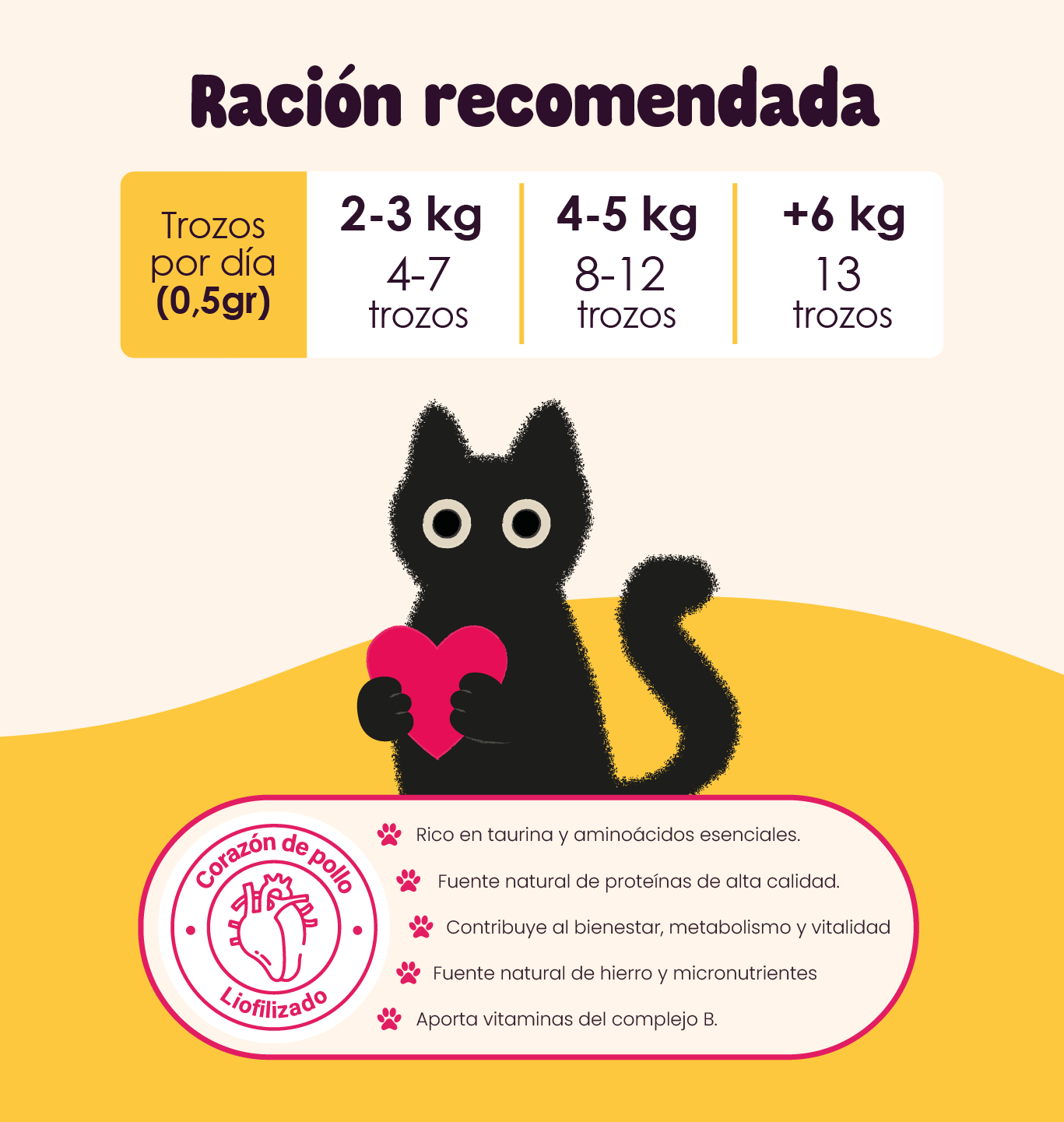 😺 4–5 kg → 8–12 trozos